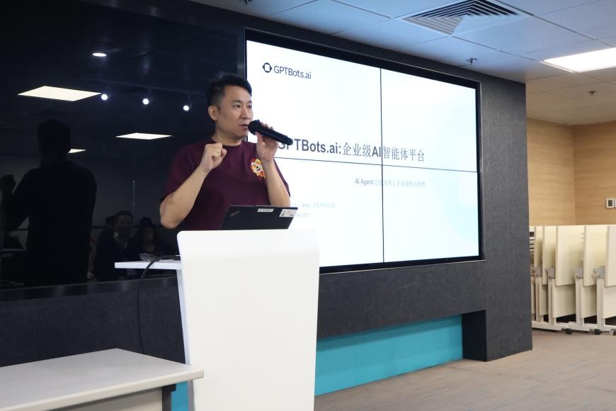 GPTBots Senior Agent Engineer Rim Wang captivated the audience by sharing compelling cross-industry application cases. He vividly demonstrated how AI Agents can optimize critical functions like customer service, work order management, and operational inspections, leading to marked improvements in efficiency and user experience. Complementing this, Agent Engineer Jacky Li conducted a live, hands-on demonstration of the practical pathway for rapidly building AI Agents without requiring any coding, allowing enterprise managers to intuitively grasp the immediate and tangible value that AI brings.