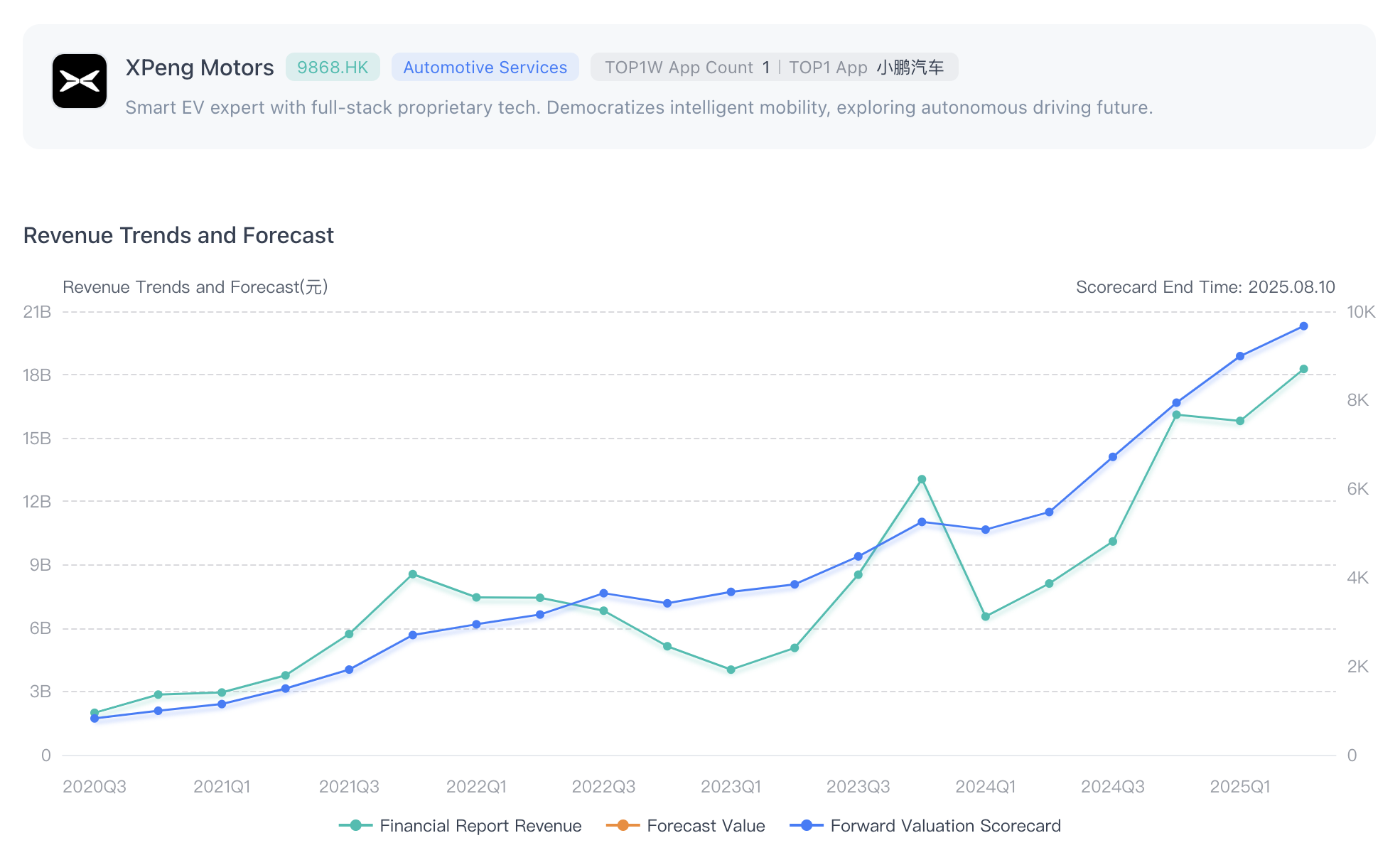 For XPeng, linear analysis of app activity, offline traffic, and factory population showed only two divergences over 20 quarters (2020–2024), with trends otherwise highly consistent.
