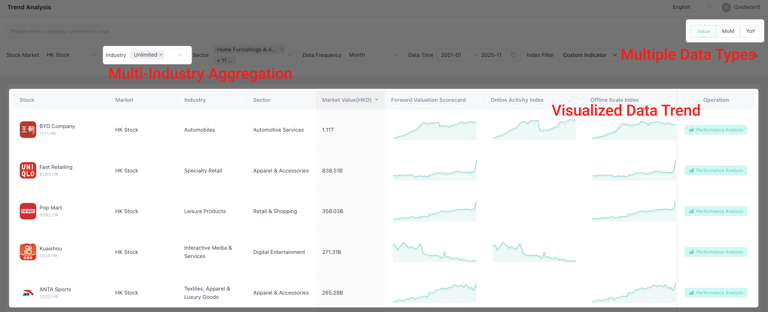 Currently, MoonFox Financial Alternative Data covers over 300 listed companies and 1,000+ brands across A-shares, Hong Kong, and US markets. Clients include leading global investment institutions such as BlackRock, Goldman Sachs, Sequoia Capital, and CITIC Securities. Interested institutions can apply for a trial via the MoonFox Data website (www.moonfox.cn).