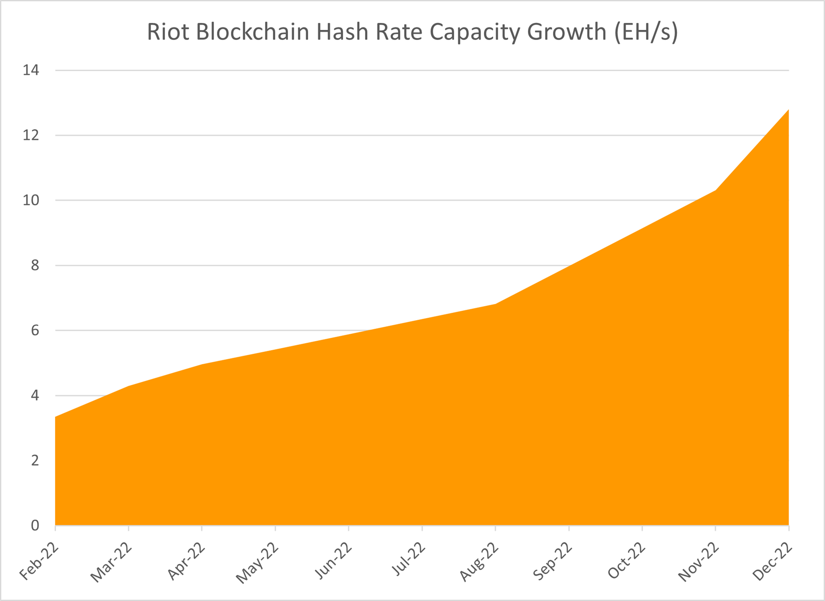 By Q4 2022, Riot anticipates a total self-mining hash rate capacity of 12.8 EH/s, assuming full deployment of approximately 120,150 Antminer ASICs, but excluding any potential expected incremental productivity gains from the Company’s utilization of 200 MW of immersion-cooling infrastructure. Approximately 97% of Riot’s self-mining fleet will consist of the latest generation S19 series miner model. Upon full deployment of all currently contracted miners, the Company’s total self-mining fleet will consume approximately 370 MW of energy. In addition to the Company’s self-mining operations, Riot’s Whinstone Facility hosts approximately 200 MW of institutional Bitcoin mining clients.