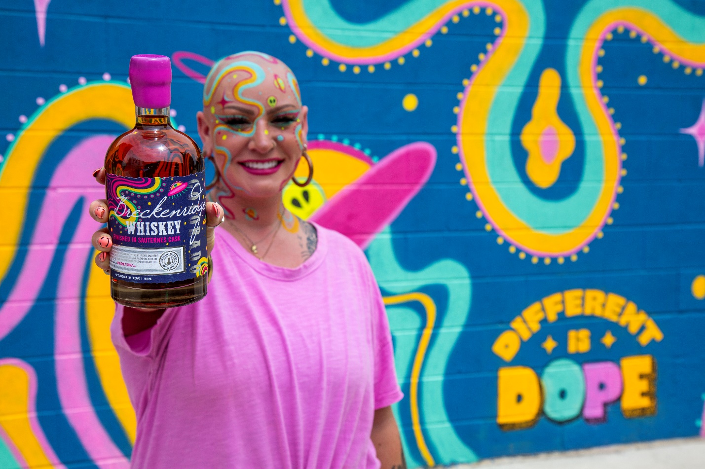 For the fourth edition of the Collector’s Art Series, Wren designs a whiskey label and mural in the RiNo Art District (Entrance in alley, 3537 Delgany St, Denver, CO 80216) in Denver, Colorado. In her design, Wren uses vivid colors and shapes to bring awareness to her message of inclusivity, "Different is Dope!” After losing all her hair to Alopecia, an autoimmune disease, Wren began using bold, creative makeup to express her femininity, believing in the power of creativity as a healing source. A donation of $5 per bottle will be donated to SOS Outreach, a nonprofit organization that uses mentorship, outdoor adventure, and a progressive curriculum to foster a deep sense of belonging in young people.