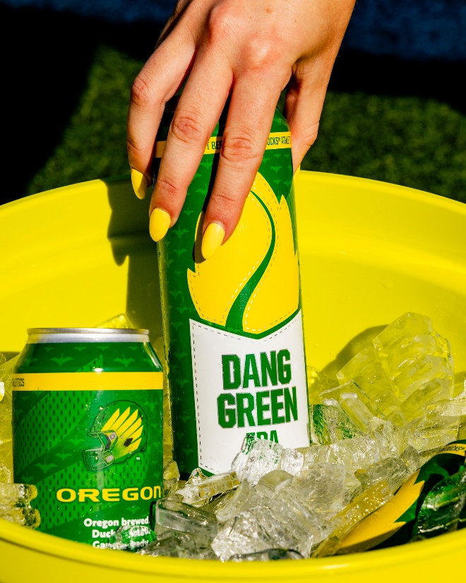 In addition to delivering co-branded cans of Dang Green IPA, the partnership provides Hop Valley with in-venue signage, digital marketing campaigns and activations before various games across all Oregon Duck sports.