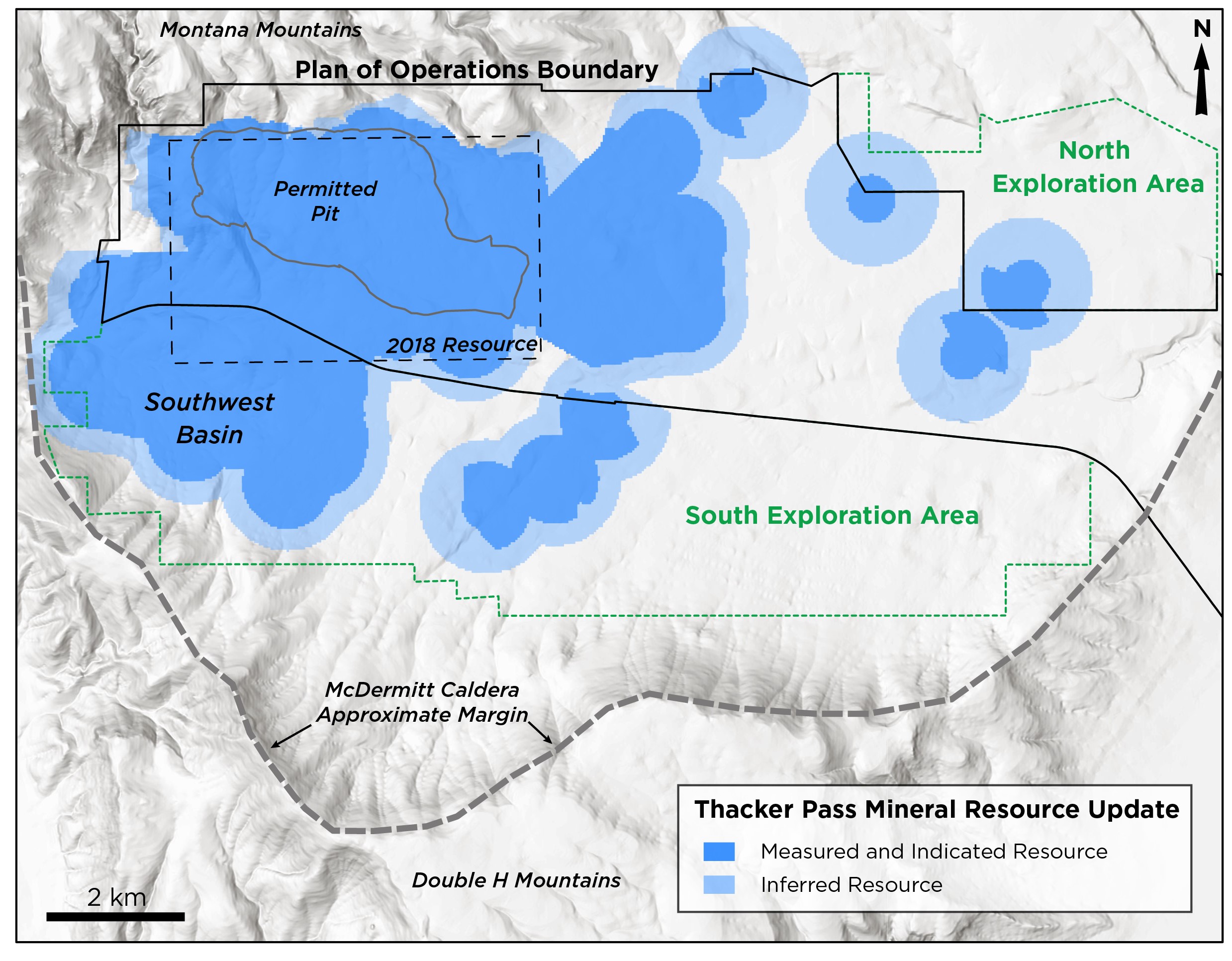 Lithium Americas Corp. (TSX: LAC) (NYSE: LAC) ("Lithium Americas" or the "Company") is pleased to provide a project update for the Thacker Pass lithium project in Humboldt County, Nevada (“Thacker Pass” or the “Project”) including an increase in the Mineral Resource estimate to 13.7 million tonnes (“Mt”) of lithium carbonate equivalent (“LCE”) grading 2,231 parts per million lithium (“ppm Li”) of Measured and Indicated (“M&I”) and 4.4 Mt of LCE grading 2,112 ppm Li of Inferred Resources.