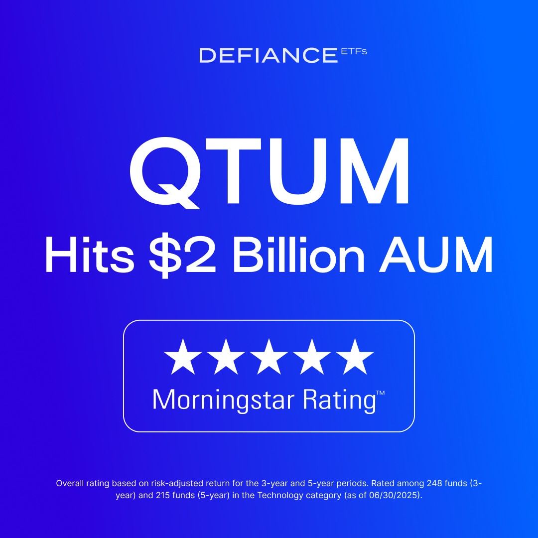 MIAMI, Sept. 02, 2025 (GLOBE NEWSWIRE) -- Defiance ETFs, a pioneer in thematic investing, announced that its QTUM – Defiance Quantum Computing ETF – has surpassed $2 billion in assets under management (AUM). This milestone highlights the growing investor interest in quantum computing and related technologies. QTUM also holds a 5-star Overall Morningstar Rating™ (as of June 30, 2025), further underscoring its strong performance within the technology category.
