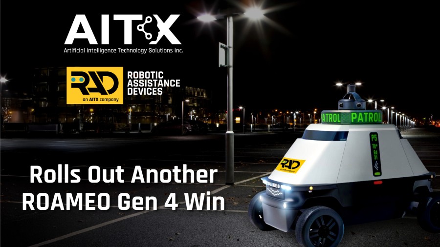 Detroit, Michigan--(Newsfile Corp. - April 29, 2025) - Artificial Intelligence Technology Solutions, Inc., (OTC Pink: AITX) (the Company), through its wholly owned subsidiary Robotic Assistance Devices, Inc. (RAD), today announced that a national retail operator has placed an order for a ROAMEO™ Gen 4 autonomous security robot vehicle. The mobile device will be deployed to enhance parking lot security during all hours while providing services ranging from customer assistance and direction to being a highly visible deterrent with the intelligence to escort people off property. Facilitated through an authorized RAD dealer, this order represents another milestone in the growing adoption of ROAMEO Gen 4 across commercial and retail environments.