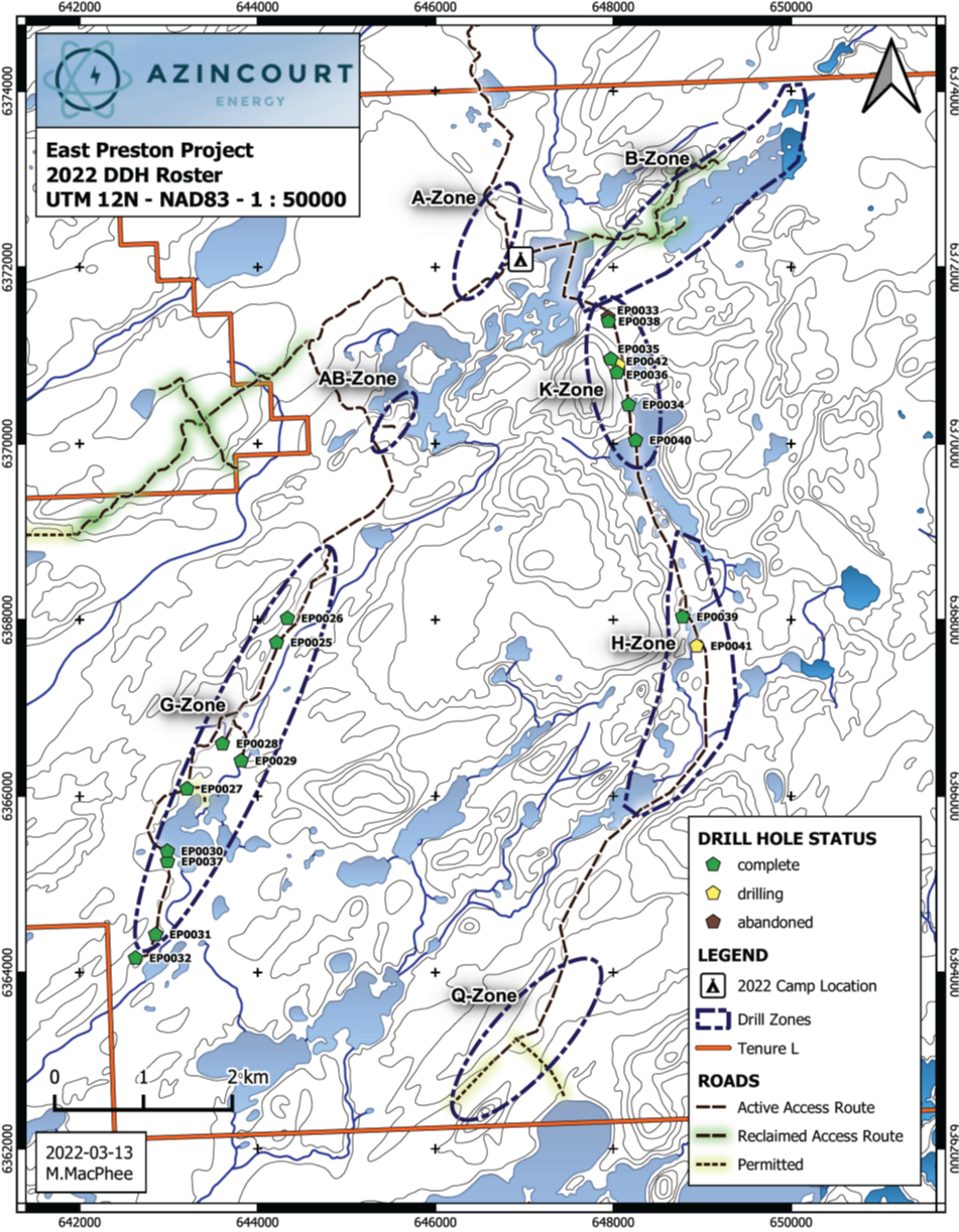 AZINCOURT ENERGY CORP. (“Azincourt” or the “Company”) (TSX.V: AAZ, OTCQB: AZURF), is pleased to provide an update on the 2022 exploration program at the East Preston uranium project, located in the western Athabasca Basin, Saskatchewan, Canada.