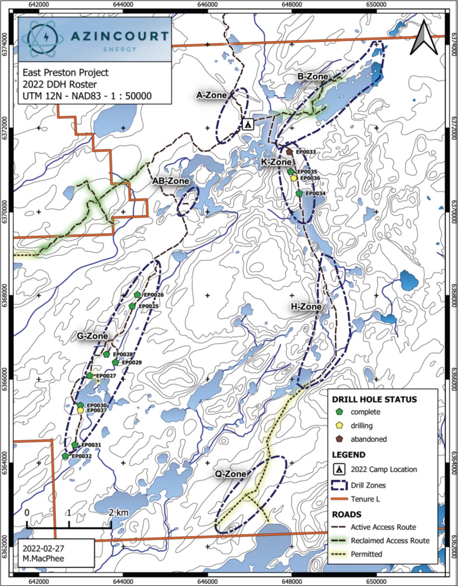 AZINCOURT ENERGY CORP. (“Azincourt” or the “Company”) (TSX.V: AAZ, OTCQB: AZURF), is pleased to provide an update on the ongoing 2022 exploration program at the East Preston uranium project, located in the western Athabasca Basin, Saskatchewan, Canada.