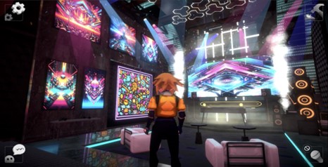 An avatar standing in an EDM-themed room. iGaming Virtual Floor
