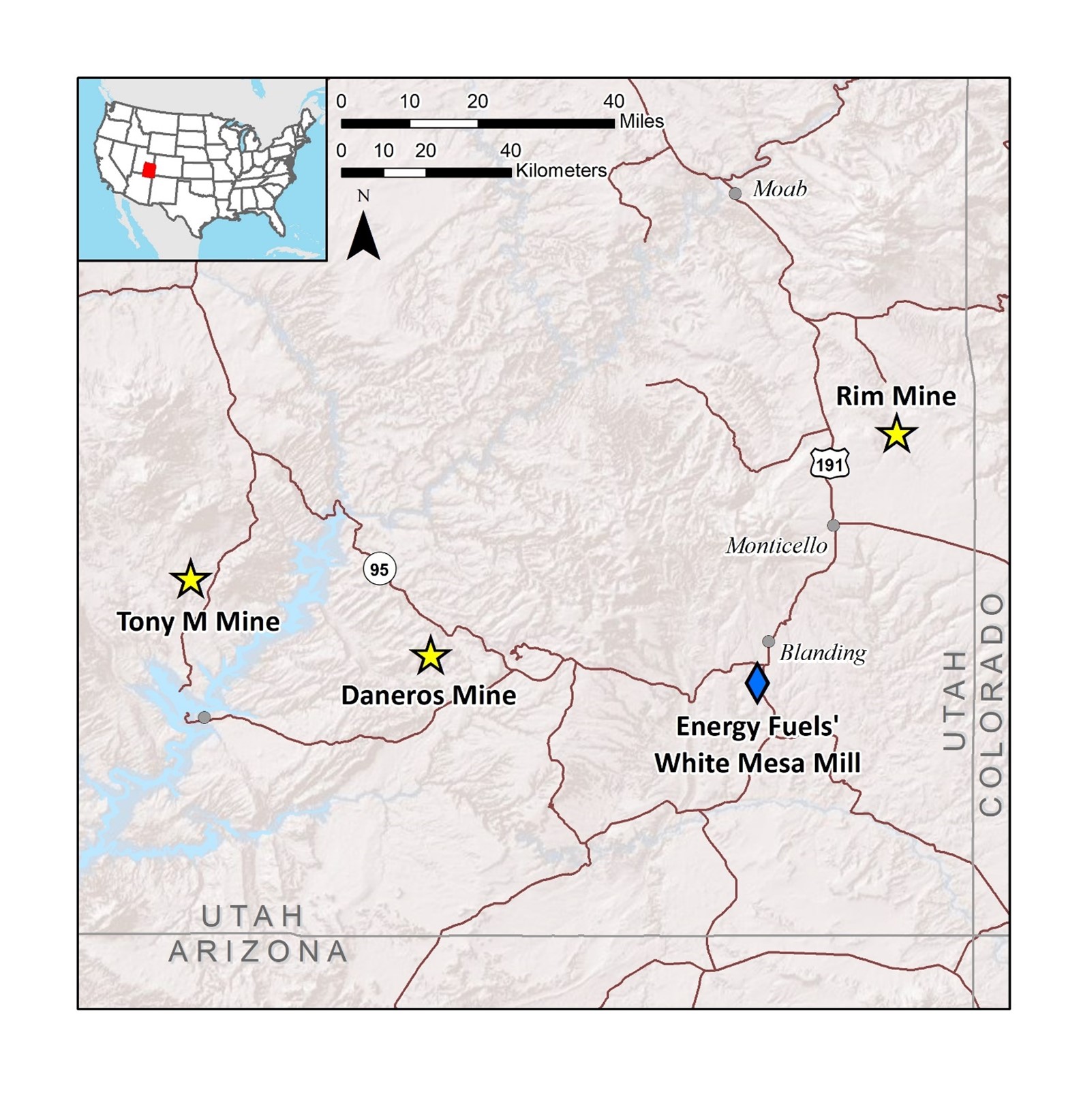 Consolidated Uranium Inc. (“CUR”, the “Company”, “Consolidated Uranium”) (TSXV: CUR) (OTCQB: CURUF) is pleased to announce initial work programs (the “Program”) on its past producing US uranium projects, Tony M, Daneros and Rim, acquired from Energy Fuels Inc. (“Energy Fuels”) in late 2021. The work programs are being planned and implemented in conjunction with Energy Fuels, as the operator of the projects, and include historic mineral resource confirmation and expansion drilling as well as other activities relating to advancing the projects toward a production ready state. These mines are uniquely positioned in close proximity to the White Mesa Mill (Figure 1) owned and operated by Energy Fuels, with whom CUR has a Toll Milling Agreement.