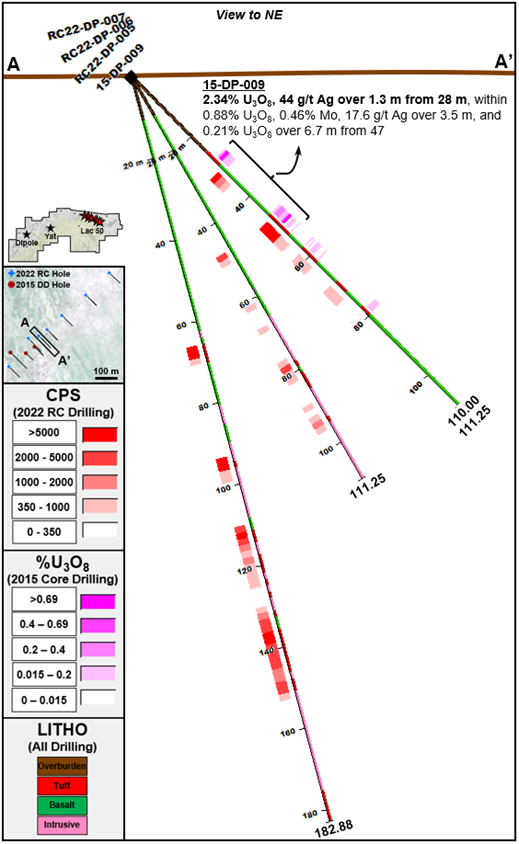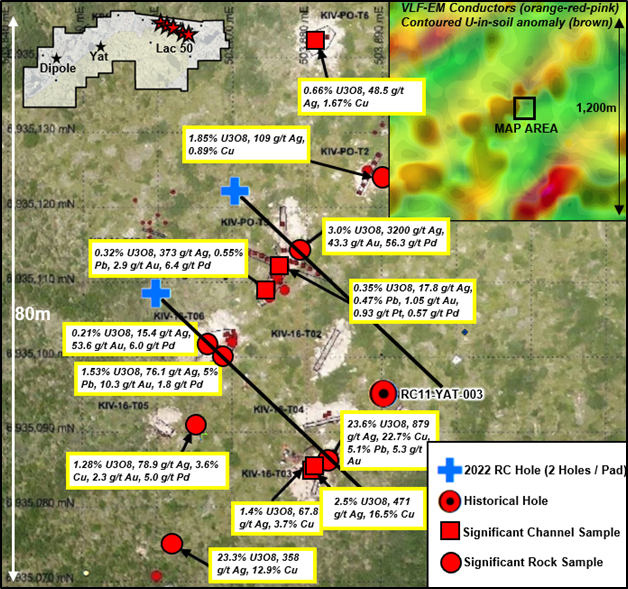 Angilak Property Uranium Project 2022 Dipole and Yat RC Drilling Highlights: