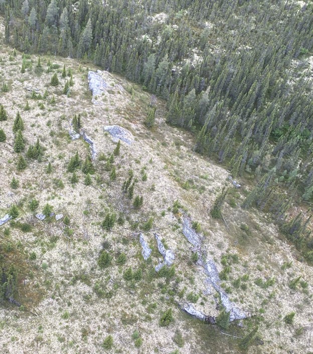 Assay results have been returned for the first series of grab/chip sampling and include a total of thirty-two (32) pegmatite samples collected along the trend grading an average of 0.98% Li2O to maximum of 3.73% Li2O (Table 1). Grades of tantalum average 113 ppm Ta2O5 with a maximum of 948 ppm Ta2O5. Assays from additional grab/chip samples remain pending, as well as assays for a total of 121.1 m of channel sampling completed to provide a more robust estimate of grade potential and zonation across the outcrops.