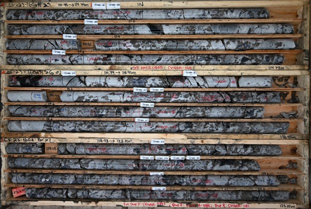 - No twinned holes have been completed, apart from CV23-166, which was re-collared as a different core size, as well as some holes that were lost prior to hitting their target depth, which were re-collared a few metres adjacent.
