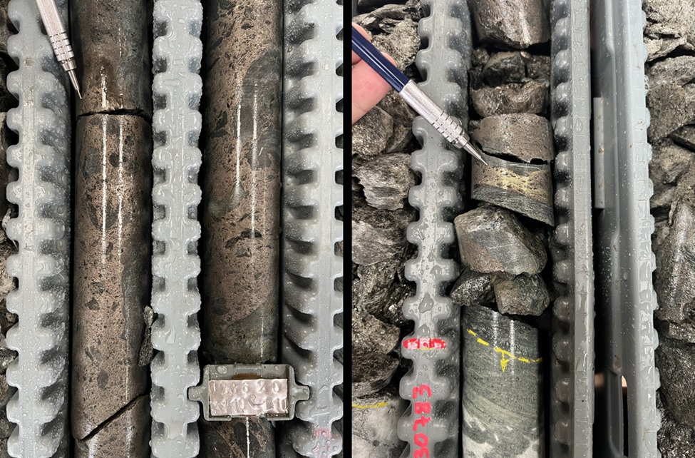 Figure 3: Semi-massive to brecciated sulfides intersected in DD23TU32, with nickel-sulfide grades up to 1.35% Ni, and copper up to 0.29% Cu. Dominant sulfide is pyrrhotite, with subordinate pentlandite and chalcopyrite.